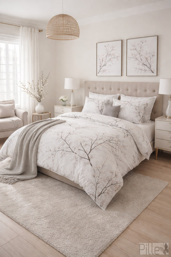 Az elegáns és harmonikus cseresznyevirág motívum tökéletesen meghitt hangulatot kölcsönöz hálószobájának,.