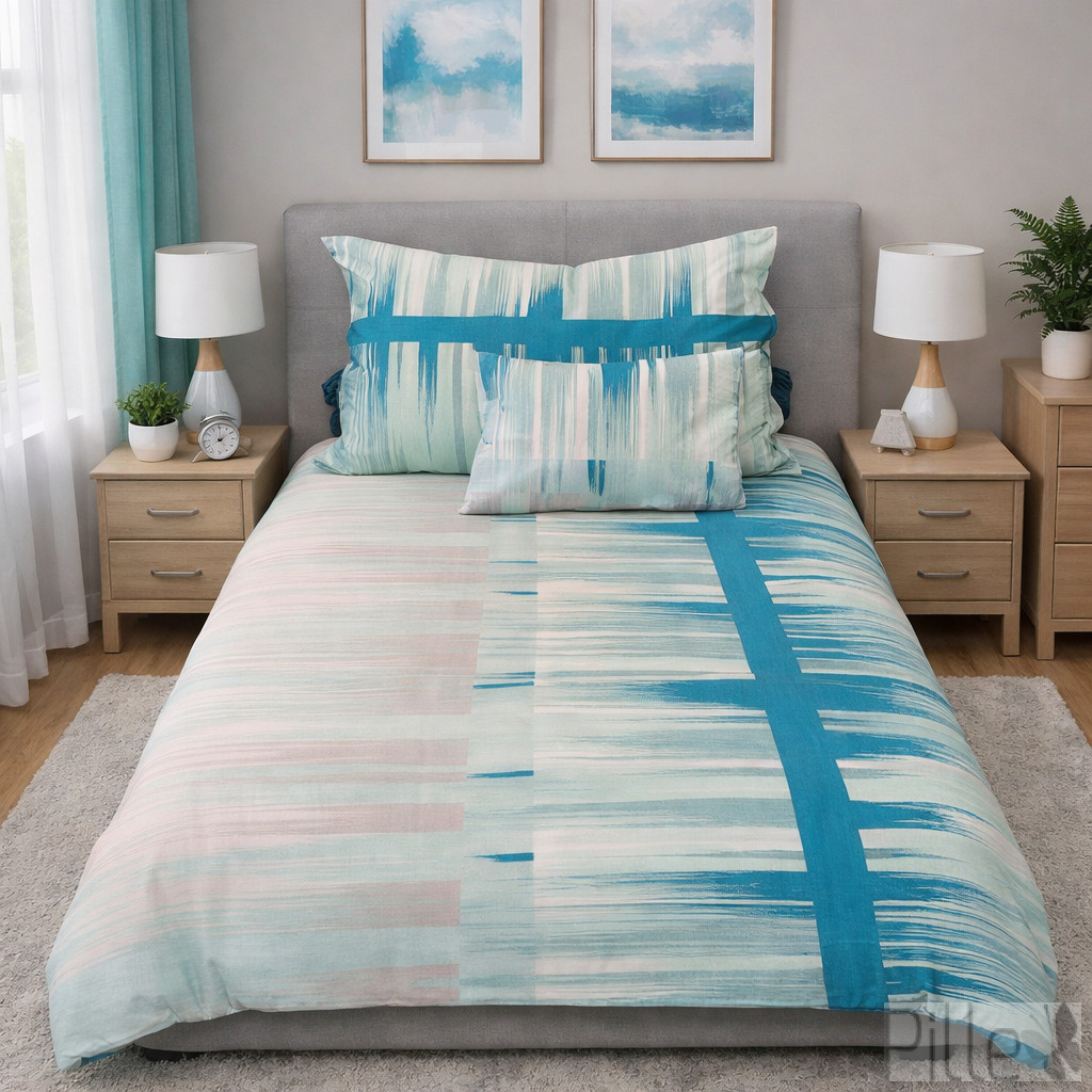 Ez a modern, absztrakt mintázatú ágynemű friss és nyugodt hangulatot teremt a hálószobában.