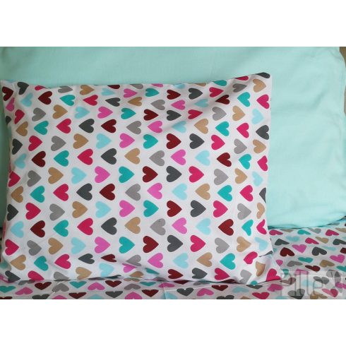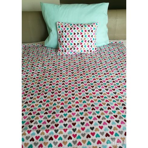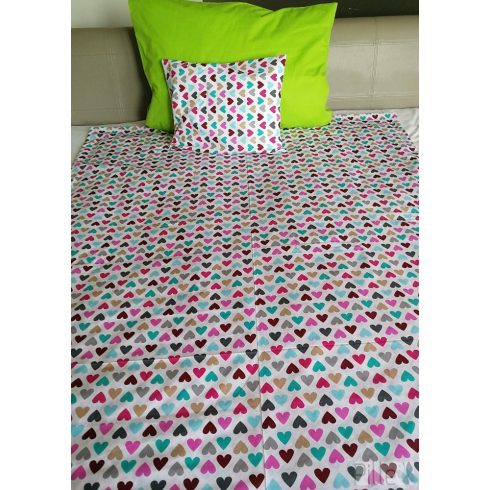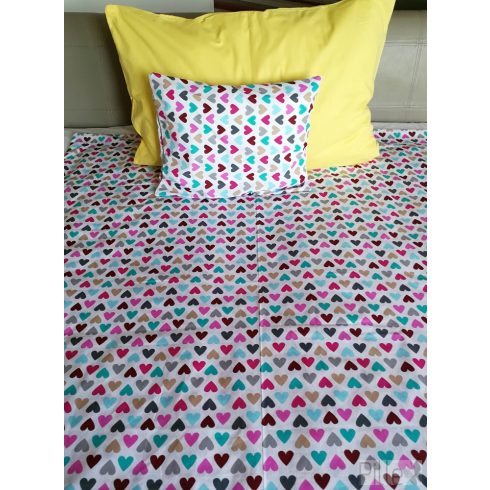 A paplan és kis párna mind két oldalán azonos a minta, a nagypárna más szín de mindkét oldala azonos.
